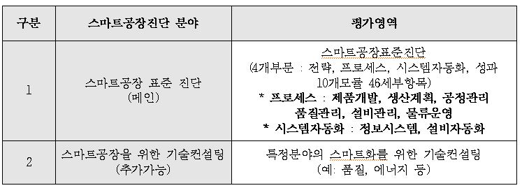 * 스마트공장진단을 위해 한국생산성본부 등 관련기관 전문가 그룹 활용